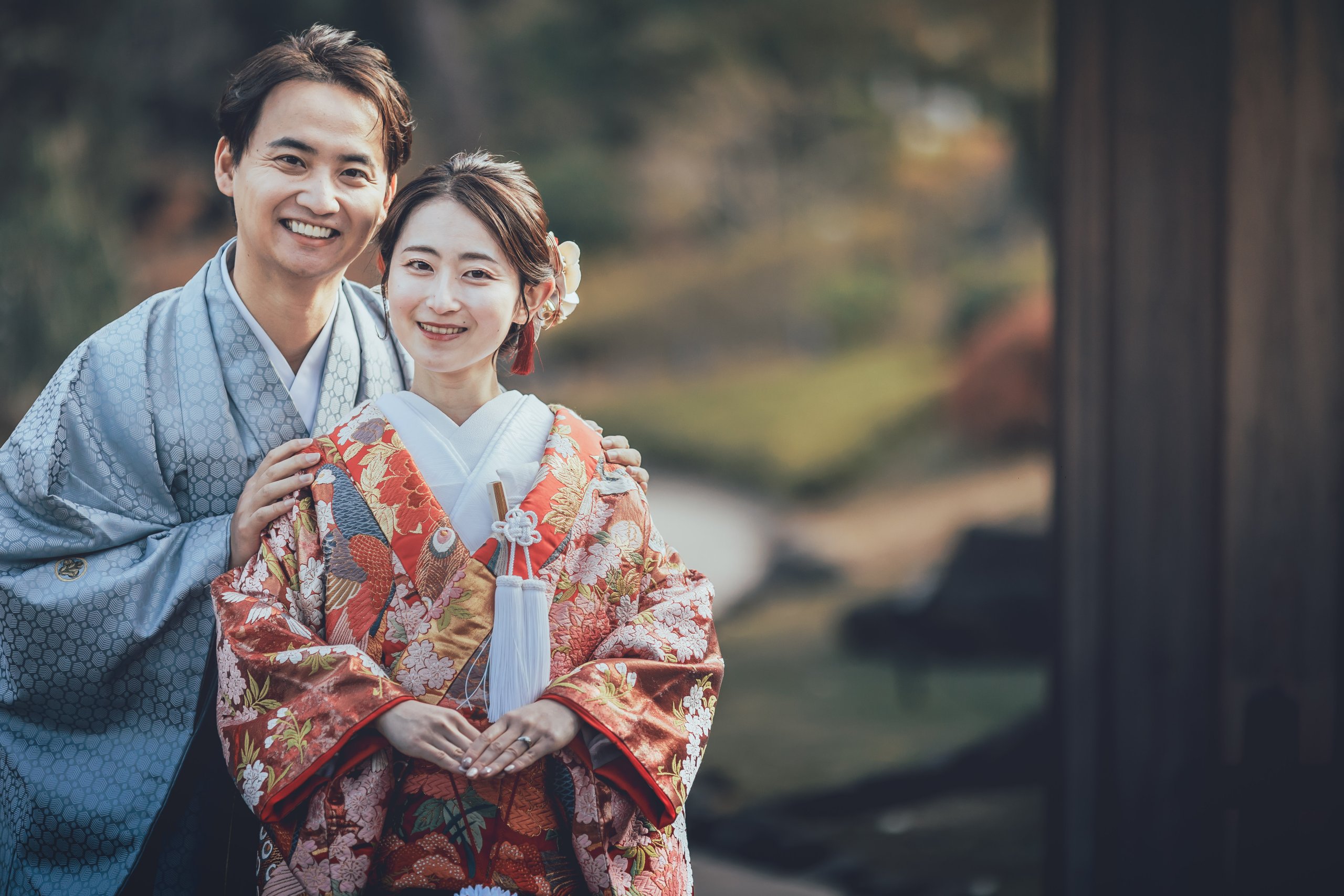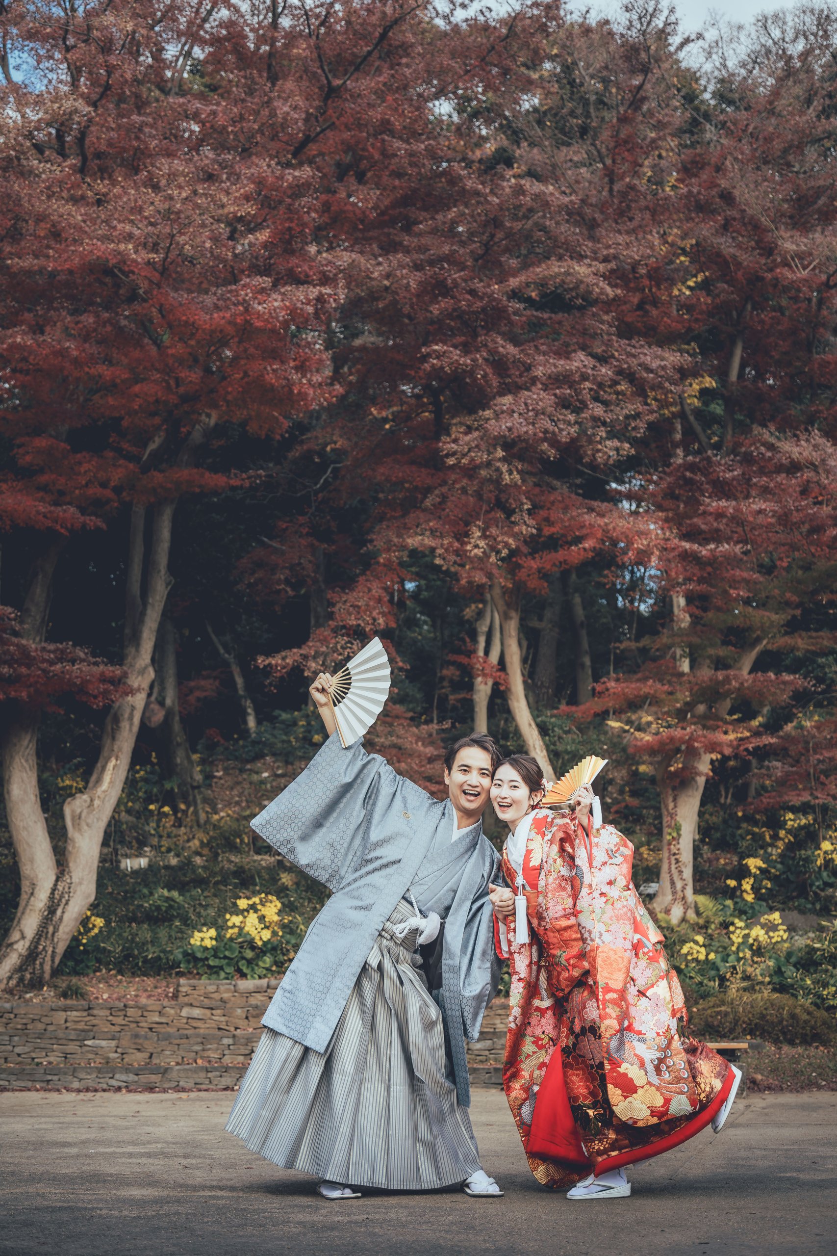 肥後細川庭園では美しい紅葉や自然の景色とともに、どのお写真もおふたりらしさがあふれる素敵な瞬間ばかりでした。